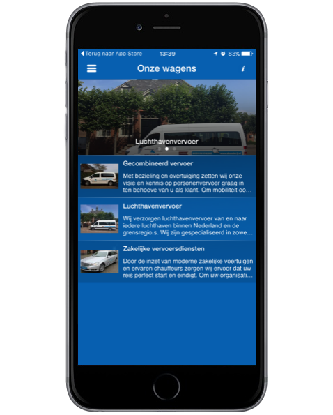 De mobiele toepassing met alle informatie over nuttige plaatsen in uw directe omgeving. Bent u klant bij Taxicentrale De Meierij of maakt u met regelmaat gebruik van onze diensten dan kunt u zich aanmelden om berichten te ontvangen over uw vervoer. Onze taxicentrale kan u dan berichten verzenden over de aankomst van uw taxi, eventuele vertragingen op weg naar uw ophaaladres of belangrijke informatie met betrekking tot uw opdracht.